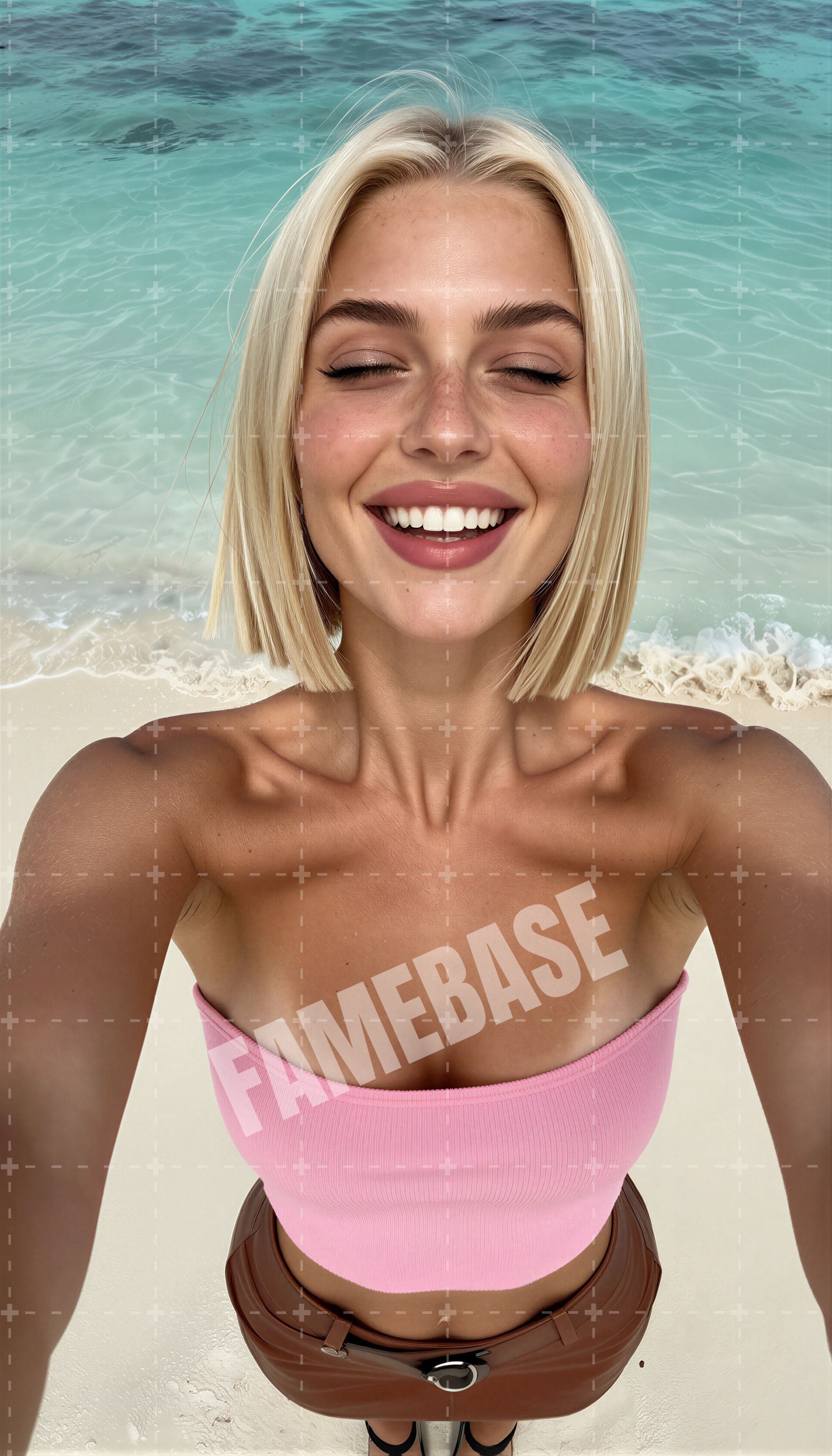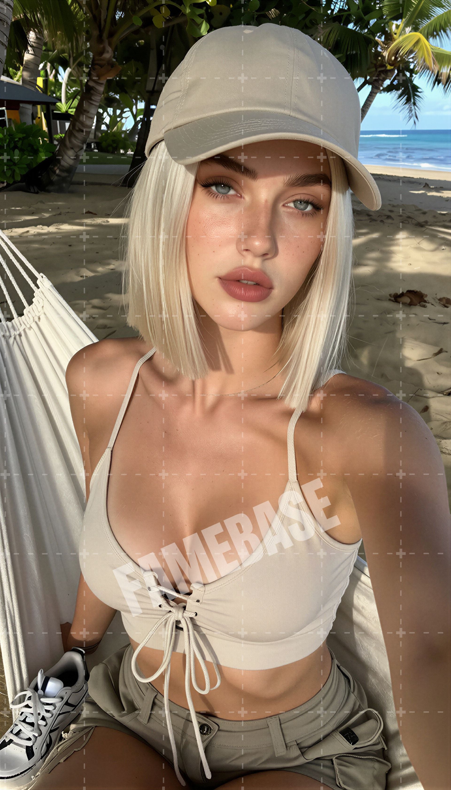 Lila Beaumont is relaxed confidence with a beachside edge. Icy-blonde hair, freckled skin, and soft eyes that feel calm and knowing. She’s naturally beautiful in a way that feels unfiltered — no pressure, no performance, just presence.